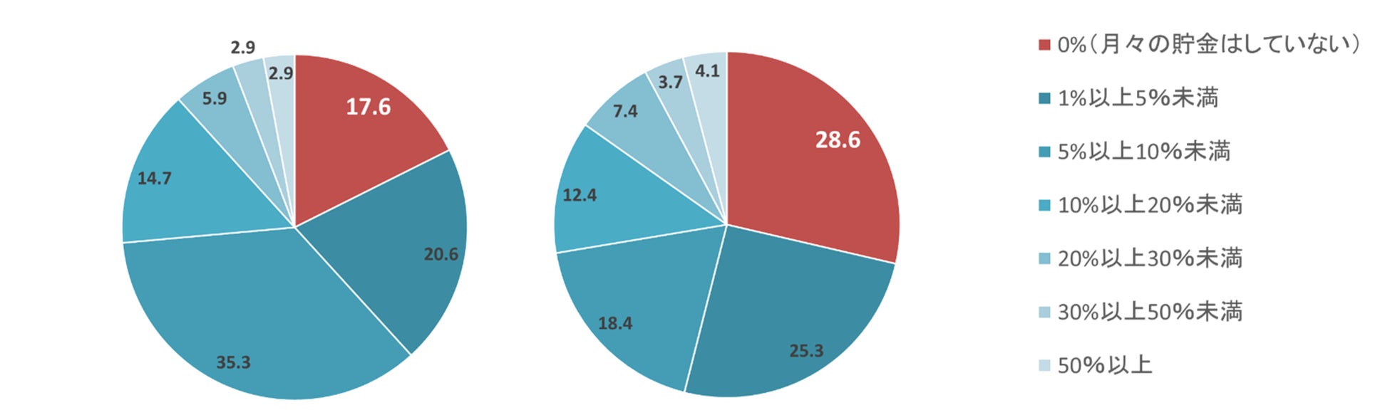 貯蓄に関して「平均して月々の収入の何%を貯金に回していますか?」という質問に対し、「0%(月々の貯金はしていない)」と回答した貯蓄習慣が無いユーザーの割合を、よく使う決済手段別に見ると、「デビットカード」を決済手段として最も使うユーザーは17.6%だったのに対し、「現金」を決済手段として最も使うユーザーは28.6%と、11.0%もの差が開いていることが分かり、デビットカードの活用が貯蓄習慣にも影響していると考えられます。