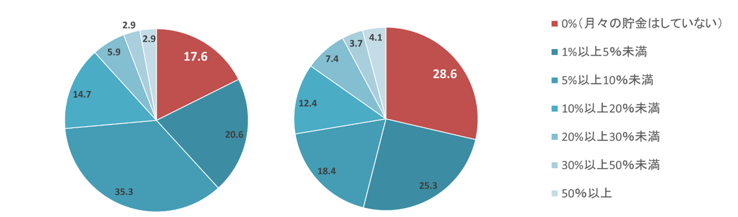 貯蓄に関して「平均して月々の収入の何%を貯金に回していますか?」という質問に対し、「0%(月々の貯金はしていない)」と回答した貯蓄習慣が無いユーザーの割合を、よく使う決済手段別に見ると、「デビットカード」を決済手段として最も使うユーザーは17.6%だったのに対し、「現金」を決済手段として最も使うユーザーは28.6%と、11.0%もの差が開いていることが分かり、デビットカードの活用が貯蓄習慣にも影響していると考えられます。