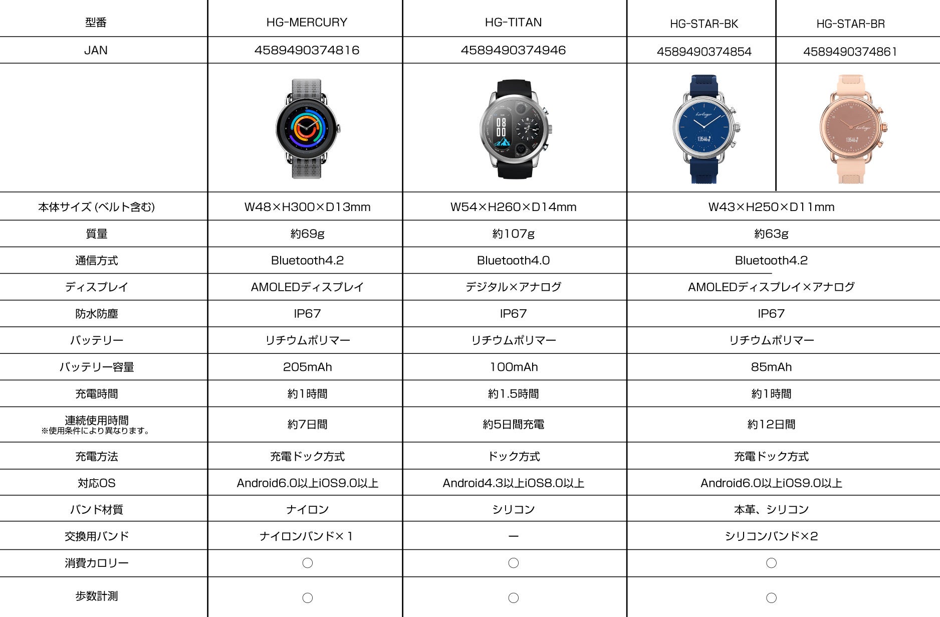 販売は全国のドン・キホーテ系列店舗(一部店舗を除く)でスタートしており、「Mercury α」「TITAN」「Star」という3タイプを展開。それぞれが独自の魅力を持ち、健康管理から通知機能、ライフスタイルのサポートまで、幅広く活躍してくれます。