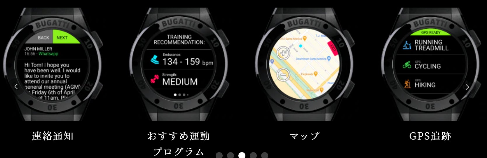 さらに世界のスマートウォッチでも2~3%しかこの機能は付いていない、100メートルの耐水性も実現。「ブガッティスマートウォッチはスマートウォッチの品質でも群を抜いている」(クラウド・マーケティング 代表、増井 実津治)と言えます。