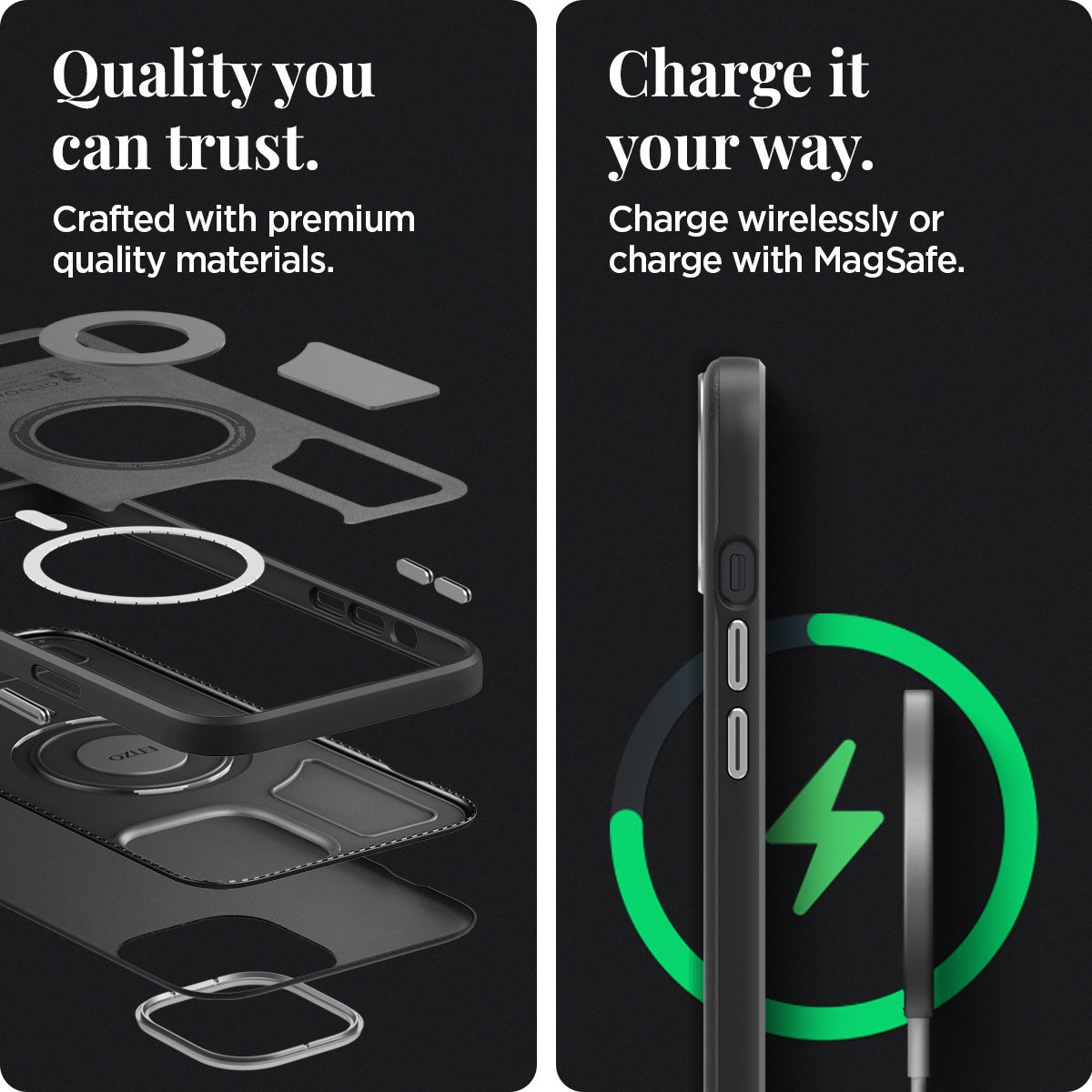 丈夫だけど薄いおかげで、ケースを付けたままでもワイヤレス充電にも対応します。ケースの中にマグネットが搭載されているため、magsafeで充電はもちろんアクセサリーもつけることができます。