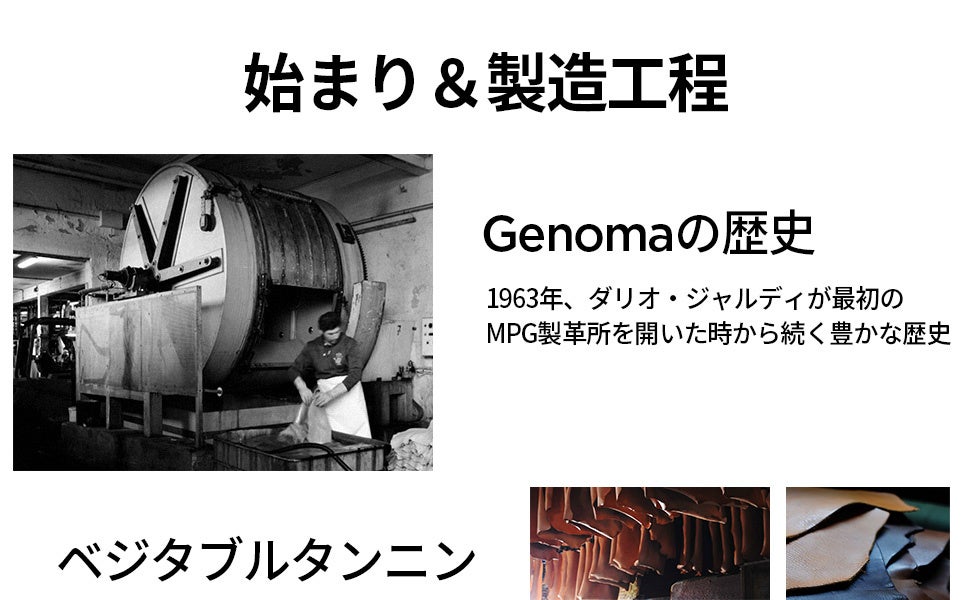 MPG製革所は由緒ある植物なめし工法で「GENOMA」という革を製造します。植物なめし工法は手工芸生産工程で、トスカーナの職人たちの貴重な伝統です。植物のタンニンという有機物質で製造されたなめし革、その中でもMPG製革所のなめし革が特別な理由は、その材料と使命のこだわりにあります。