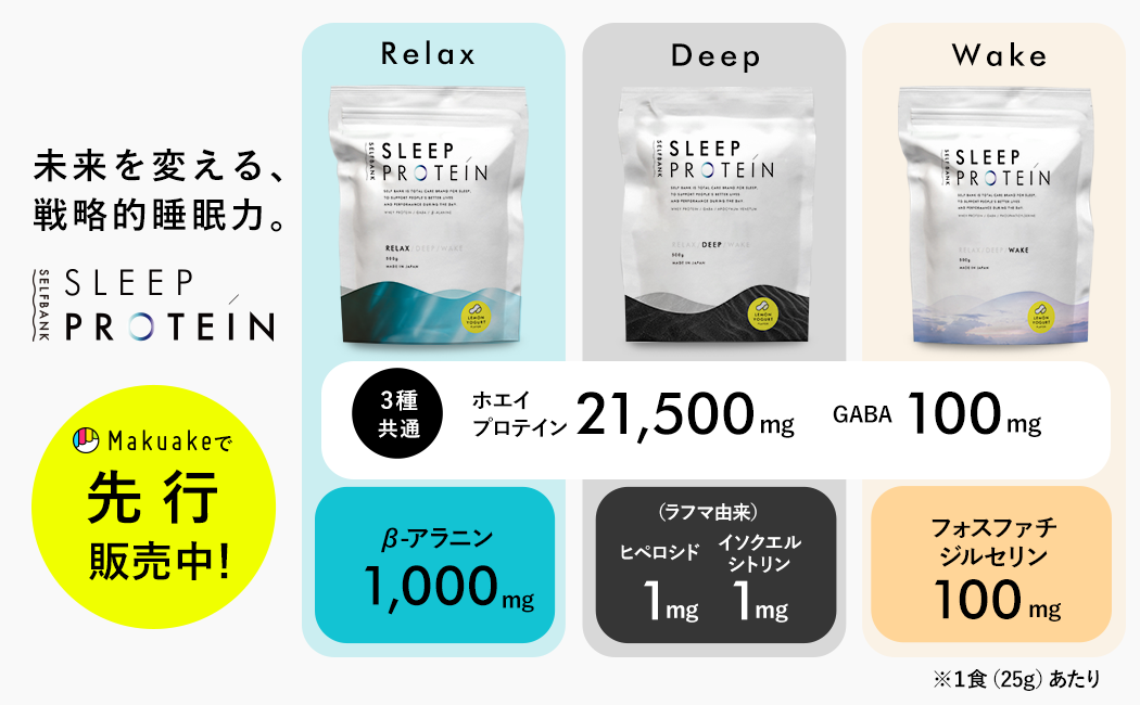 同アプリを運営するセルフケアテクノロジーズは、「セルフバンク」を利用しながら飲む「Sleepプロテイン」の先行販売を応援購入サービスMakuakeで開始しました。