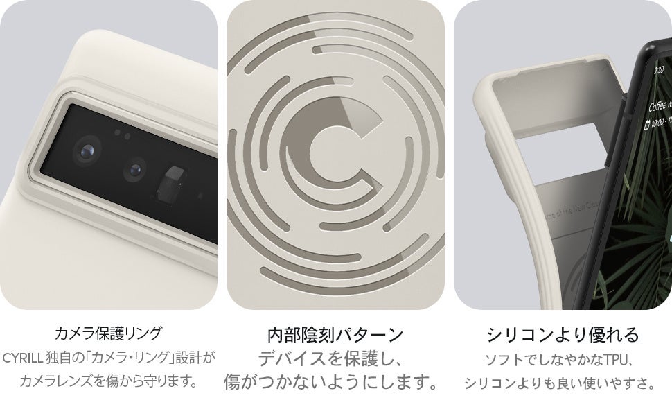 柔軟性と耐久性に優れたTPU素材を採用し、ほこりが付かず快適なグリップ感を与えます。カメラ側の端にCYRILL独自のプロテクションリングを設計し、カメラをきちんと保護できるようにしました。 シリルだけのストーンで感覚的なあなたを表現してみてください!