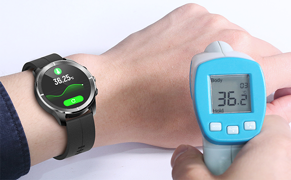 体温をその場で測定可能。体温計なしで24時間の体温観察もできるとのこと。