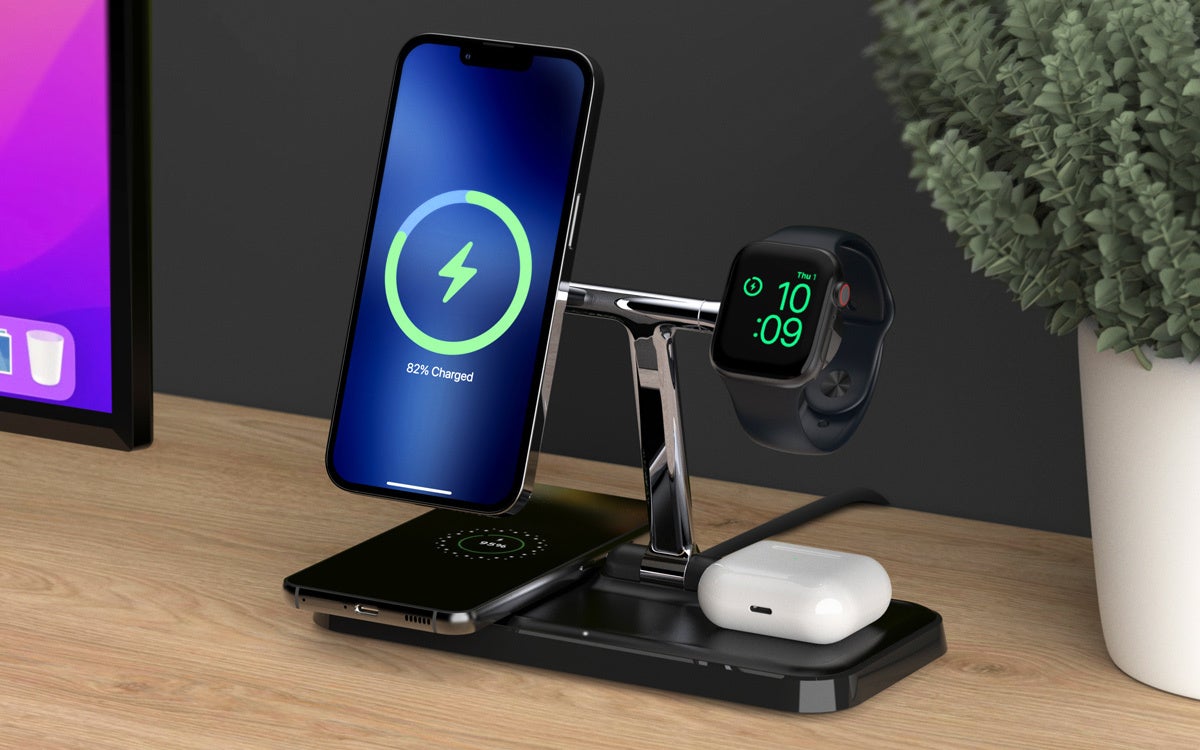 MagSafe対応のiPhoneとApple Watch、AirPods、さらにもう1台のデバイスまで、合計4台を同時にワイヤレス充電可能。端末ごとに充電ケーブルを準備する必要がなく、デスクをすっきりと見せ、ケーブルレスなライフスタイルを実現できます。