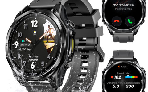 1.47インチのAMOLED大画面ディスプレイ、368×194ピクセルの高解像度、5気圧防水、タッチスクリーン+物理ボタンを搭載。