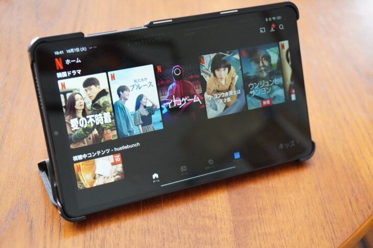 アプリの起動はやや遅いものの、起動後の操作は思ったよりスムーズ。NetflixやYouTubeの再生も映像は十分にきれいで、音質もDolby Atmos対応スピーカーがしっかりしており、動画視聴体験は価格を超えています。
