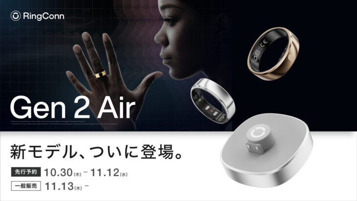 世界80ヵ国以上で展開され、累計20万個以上を販売しているスマートリングブランド「RingConn(リンコン)」から、新モデル『Gen2 Air』が登場。2025年10月30日(木)より全国の家電量販店で先行予約が開始されます。