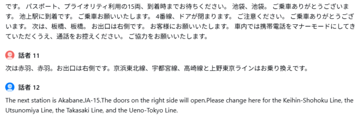 リュックの中に入れていたうえ周囲ノイズも多い状況でしたが、案内の定型フレーズはかなりの精度でテキスト化。もちろん、騒音・複数話者・反響音などが重なると誤認識は増えますが、「実務で拾っておきたい情報」を後から検索できる程度に整ったテキストになっていたのは頼もしいポイントです。