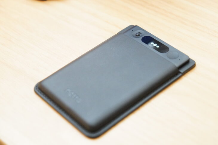 幅86.1mm、高さ55.1mm、厚さ3.5mmというカードサイズで、重さは約28g。実際に手に取ると、胸ポケットや小さなポーチに入れても存在感がないほど軽快です。取材や会議への携行でストレスを感じませんでした。