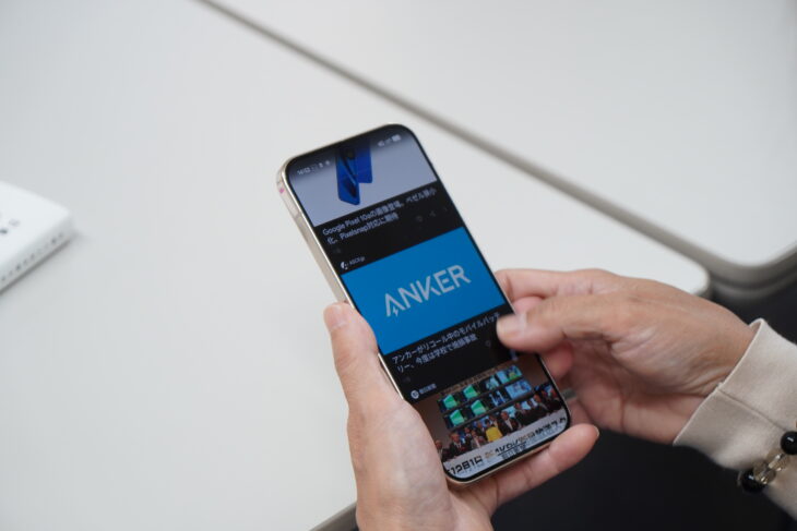 撮影中のPixelのGoogle Discoverの画面にもAnkerの記事が表示。「私が好きな記事を本当に分かってくれている」と勝間さん