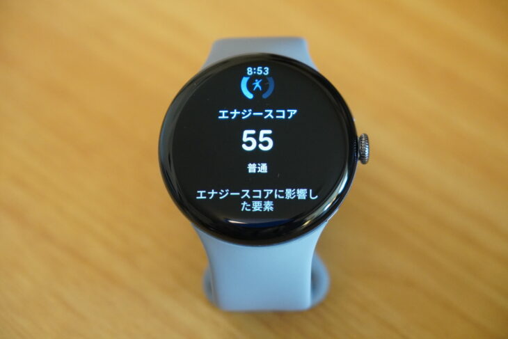 体の回復状態が100点満点のスコアで分かる「エナジースコア」機能。写真は編集部のPixel Watch 4