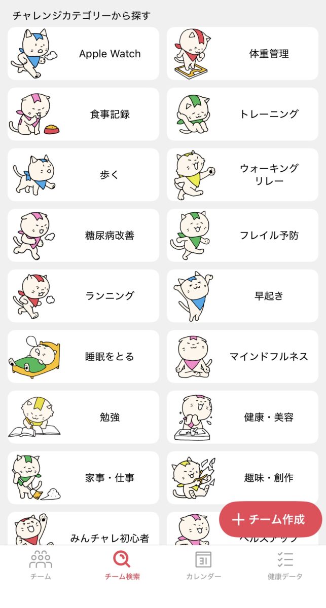 5人1組で続ける習慣化アプリ「みんチャレ®」。健康習慣の維持に役立つさまざまなグループがある。写真はアプリのスクリーンショット。© A10 Lab Inc.