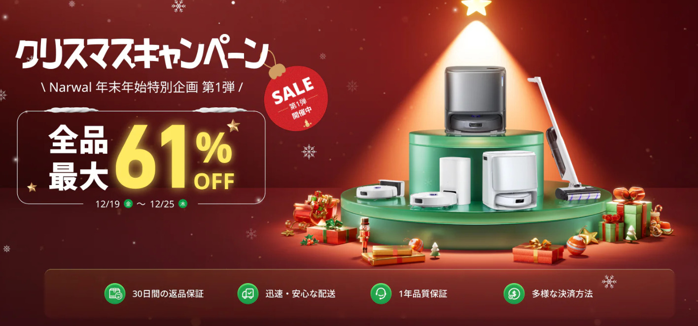 メタディスクリプション:Narwal公式が年末年始セールを開催。ロボット掃除機やアクセサリーが最大61%OFF。人気モデルやお得なセット内容を分かりやすく解説します。