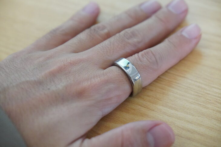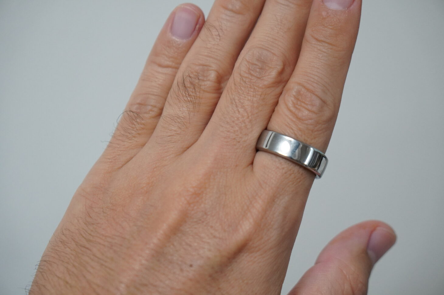 小型・極薄タイプのスマートリングと比べると、やや幅はありますが、