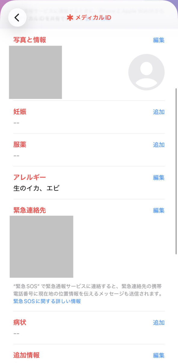 メディカルIDは、緊急時に医療従事者が確認できる個人の医療・健康情報をまとめておける機能です。