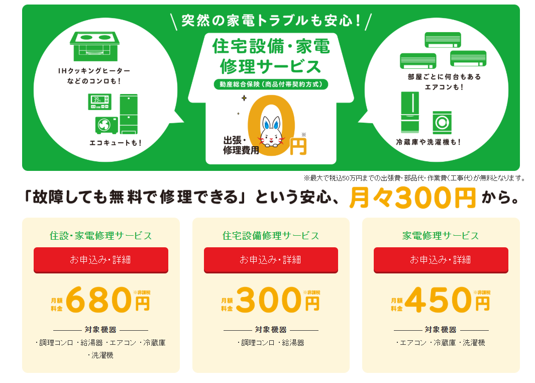 本サービスは、住宅設備や家電が自然故障した際に、修理費用を実質0円でカバーしてくれる月額制サービスです。
