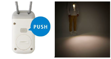 首掛けライトと防犯ブザーを融合したシンプルな発想