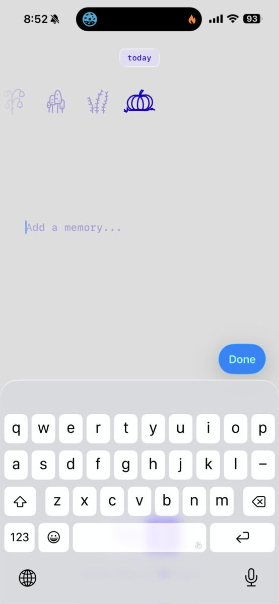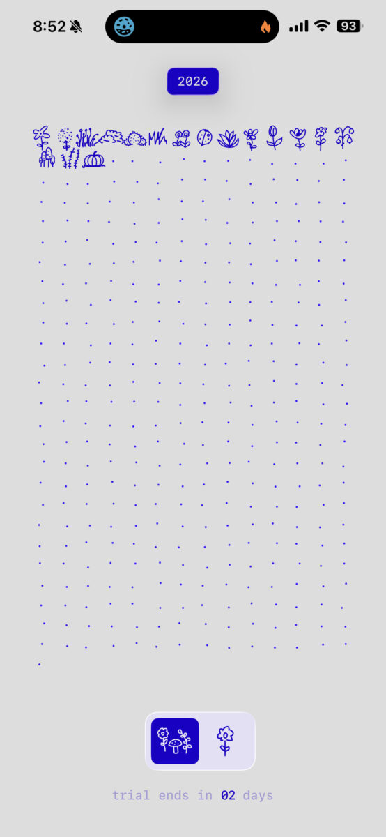 日記を書くと、その日専用の植物やモチーフが“植えられ”、1年を通して少しずつ庭が完成していきます。ただし、このアプリの本質は「育てる楽しさ」以上に、「1年を丸ごと眺められる構造」にあります。