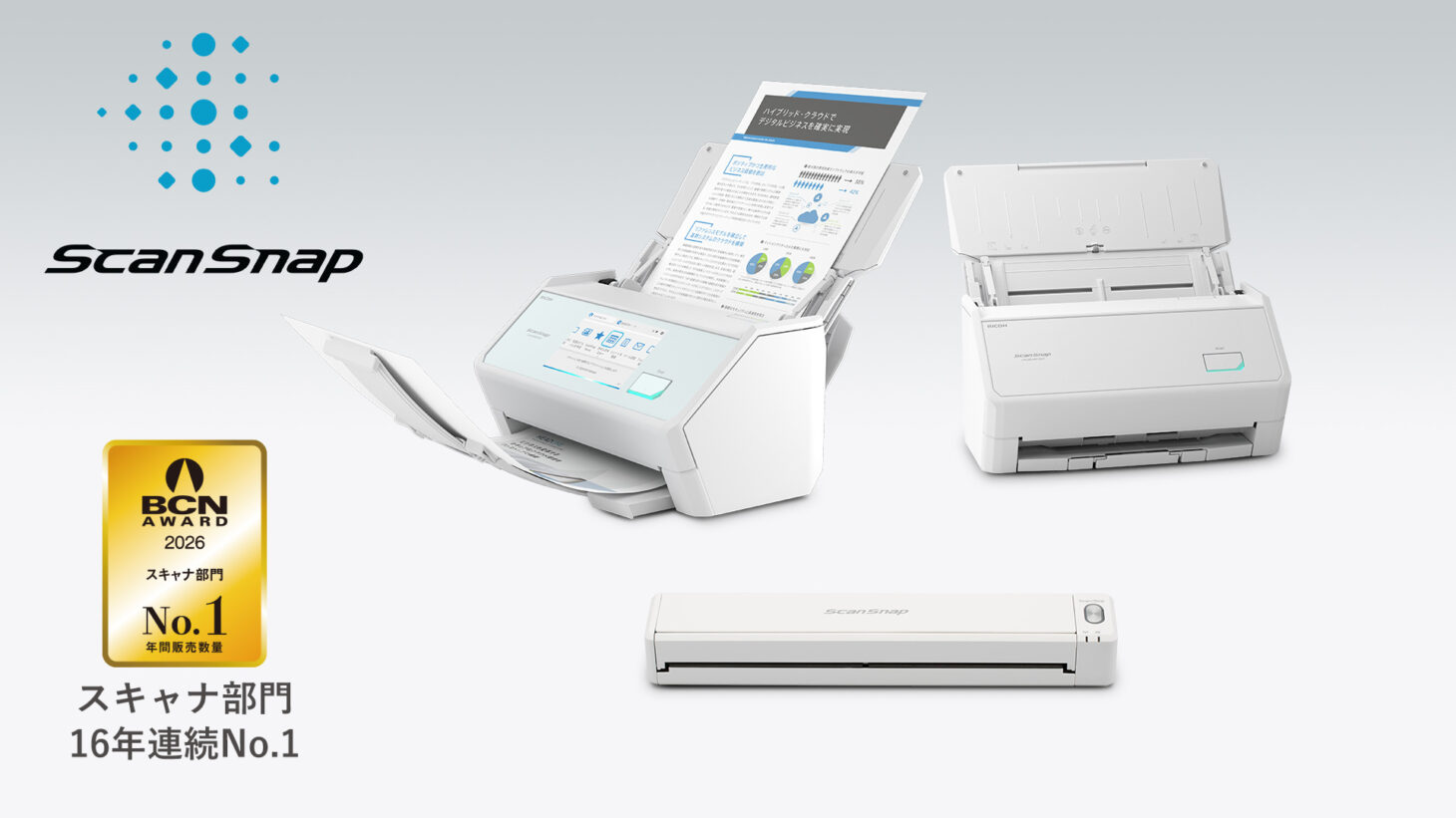 16年連続シェアNo.1達成を記念し、PFUは「BCN AWARD 16年連続シェアNo.1記念 ScanSnap大還元祭」を開催します。