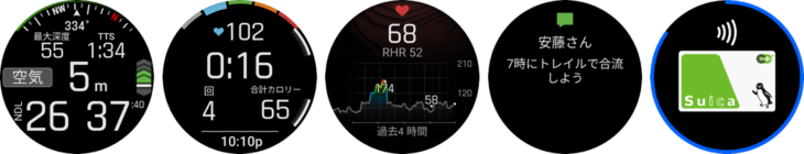 ディスプレイには1.4インチのAMOLED(有機EL)カラーディスプレイを採用。鮮やかな発色と高いコントラストにより、直射日光下でも視認性を確保しています。