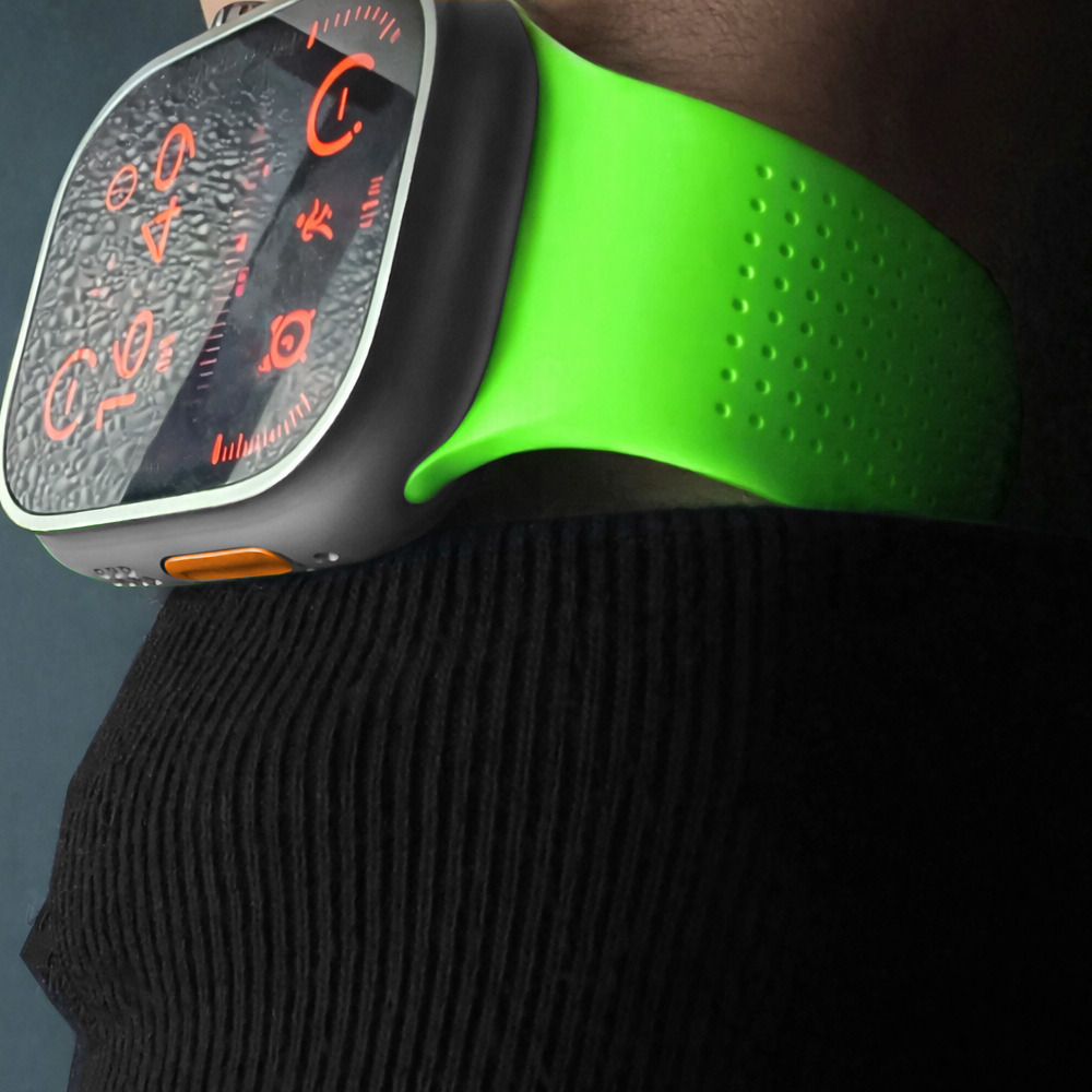 軽量かつ幅広のデザインは、Apple Watch UltraやSeries 11/10といったワイドサイズのApple Watchとも相性が良く、大型ケースを使用しているユーザーにも適したバンドです。