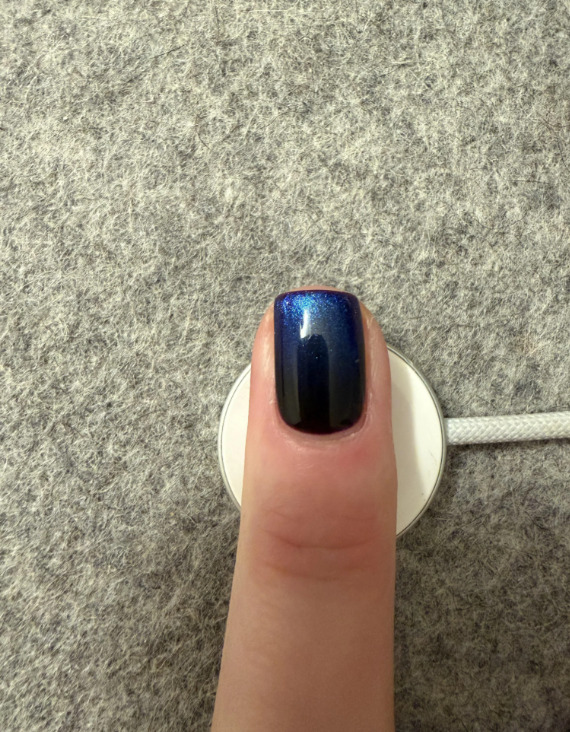 このトレンドの火付け役となったのは、海外掲示板Redditに投稿されたネイル写真でした。投稿者は、Apple Watch用充電器の上に指先を置いた状態で磁性ネイルポリッシュを塗るだけで、立体的なグラデーションが完成したと説明しています。