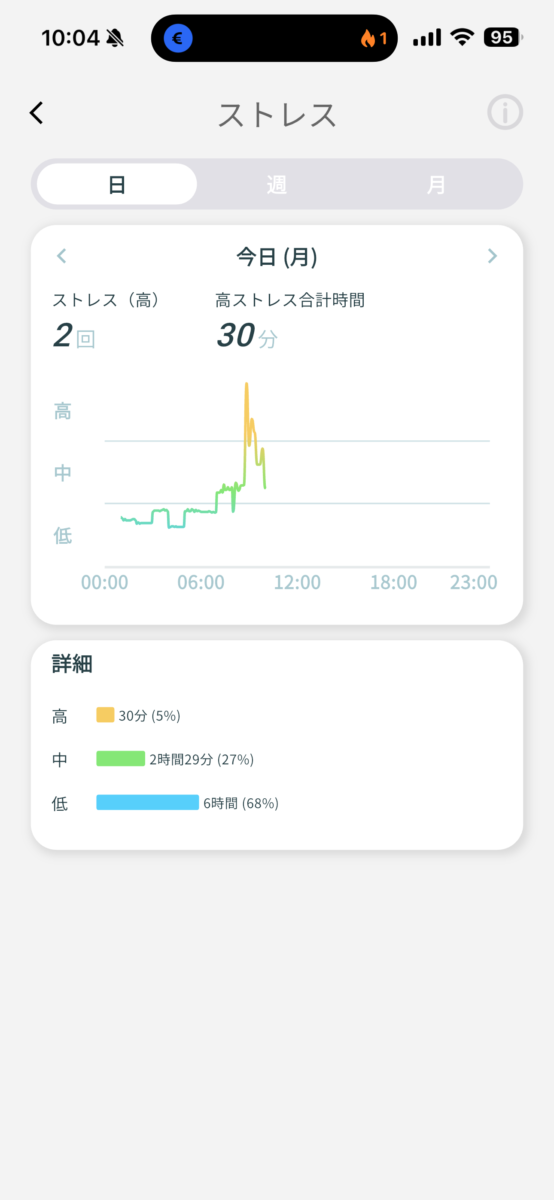 個人的に便利だと感じたのは、「なんとなく疲れた日」にストレスの波形を見て、どの時間帯に負荷が上がっていたかを振り返れることです。