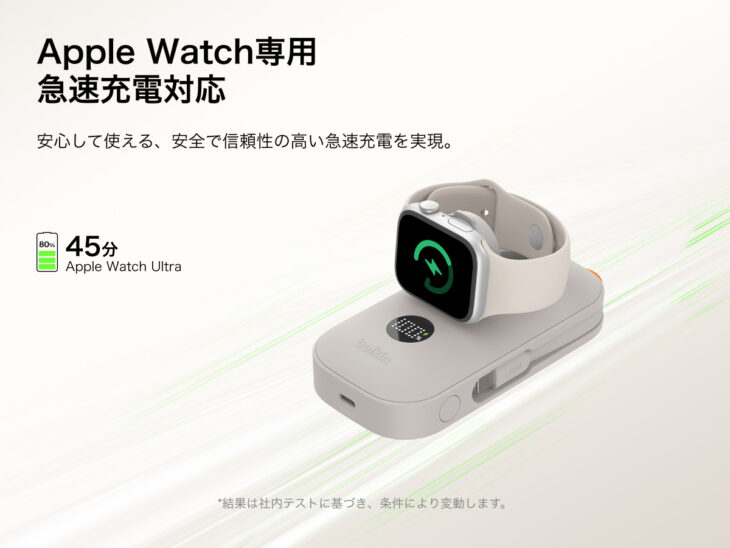 Apple Watchは約45分で0〜80%まで充電可能とされており、外出前や移動中の短時間でも実用的な充電が行えます。
