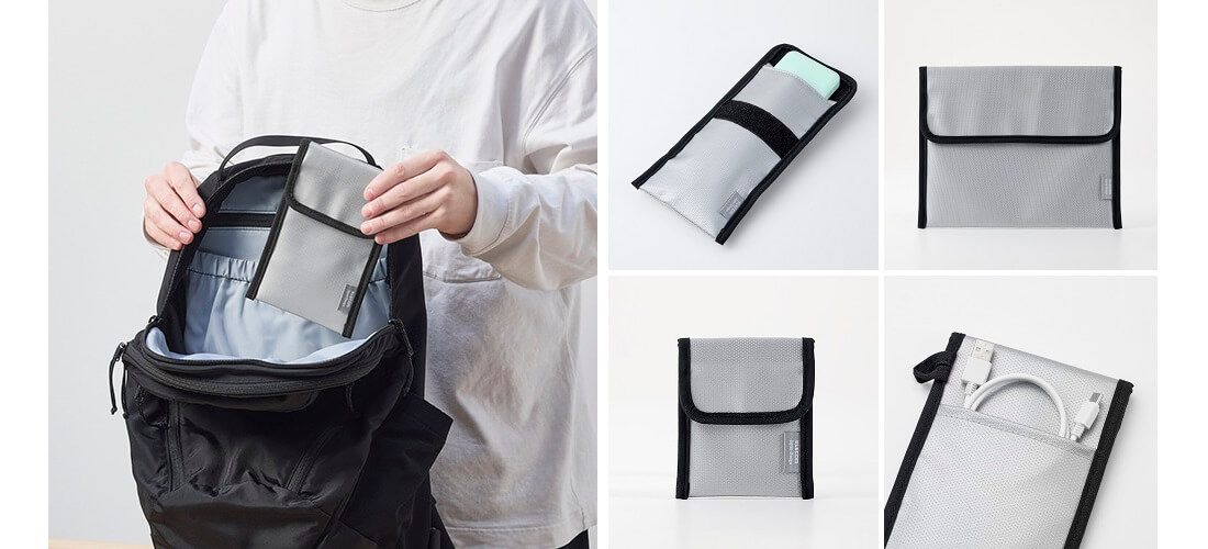 モバイルバッテリーは航空機内では手元保管が求められるなど、取り扱いに一定の注意が必要なアイテムです。本製品は、移動時や機内持ち込み時の収納にも適したサイズ設計となっています。