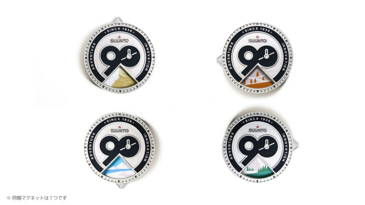直径約50mmのマグネットは多重構造となっており、円盤部分を回転させることで、春の芽吹き、白夜の夏、紅葉の秋、そしてオーロラが輝く冬へと変化する仕組み。スントのルーツである北欧の自然を表現したコレクターズアイテムとなっています。