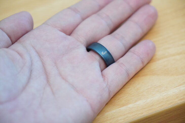 重量は約3gと軽く、リングの縦幅も比較的コンパクト。そのため、他社のスマートリングと比べても装着時のストレスが少ない印象でした。