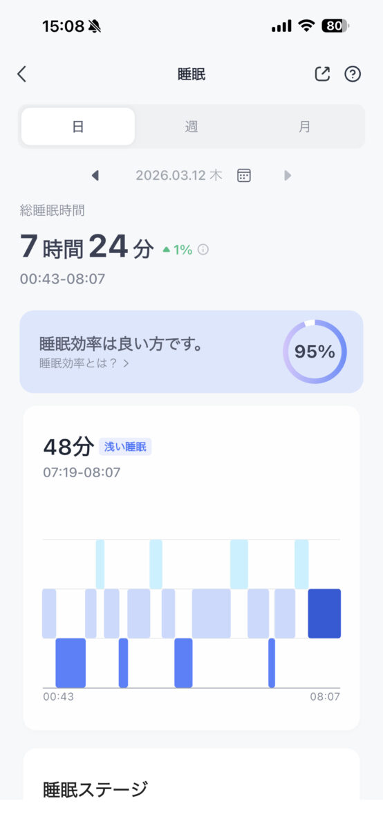 日常的に睡眠を計測して生活改善につなげたい人には、かなり便利な機能だと感じました。