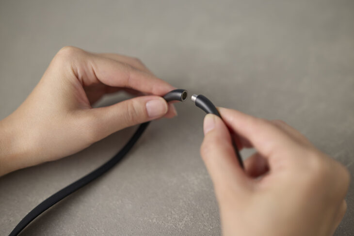 首にかけるタイプの製品で気になるのが「落下の心配」だ。この点について、コリコランループはマグネット部を持ち引っ張って外す仕様を採用しており、着用中に不意に外れて落ちる心配がないよう設計されている。着脱はワンタッチマグネット式で、手間なく装着・取り外しができる。