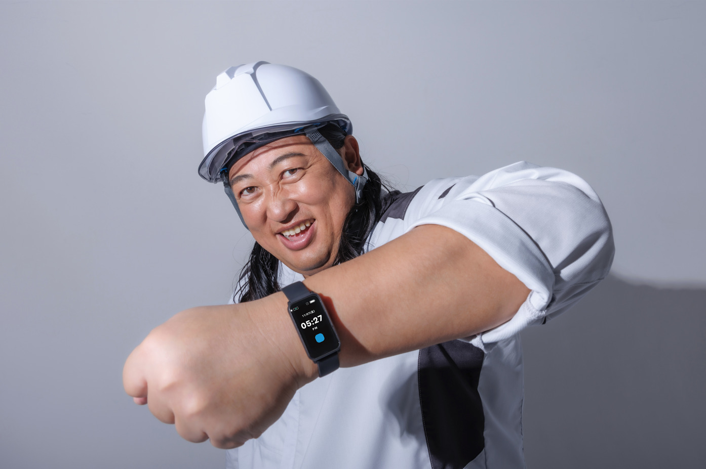 「hamon band V」は、現場の声を受けて誕生した新モデルです。大きな特徴は、猛暑リスクの検知と時計機能を1台で実現した点にあります。従来モデルにはなかった時計機能が加わったことで、仕事に集中していても自分の状態と時刻を同時に確認できるようになりました。