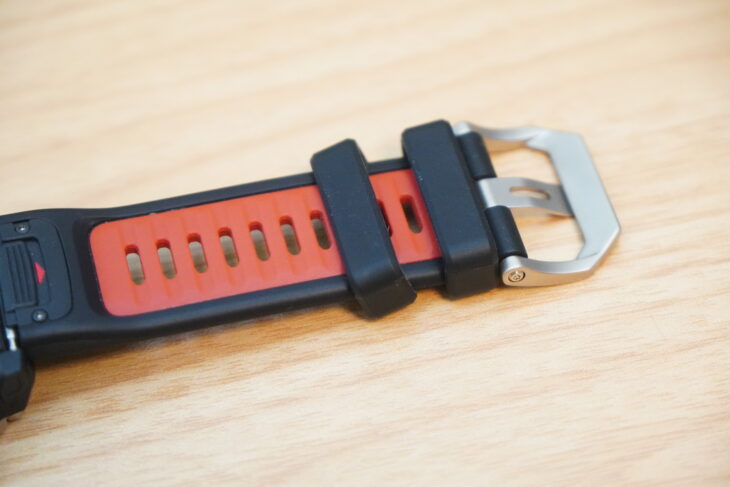 重量はバンド込みで約89.2g、本体のみだと約67.5gです。ボディには航空宇宙産業でも使われる最上級グレード5のチタン合金と、繊維強化ポリマーが採用されています。ズッシリと重いですが、次に説明する耐久性も考慮すると、岩場のある山などに行っても安心して使える堅牢性を備えたモデルといえます。
