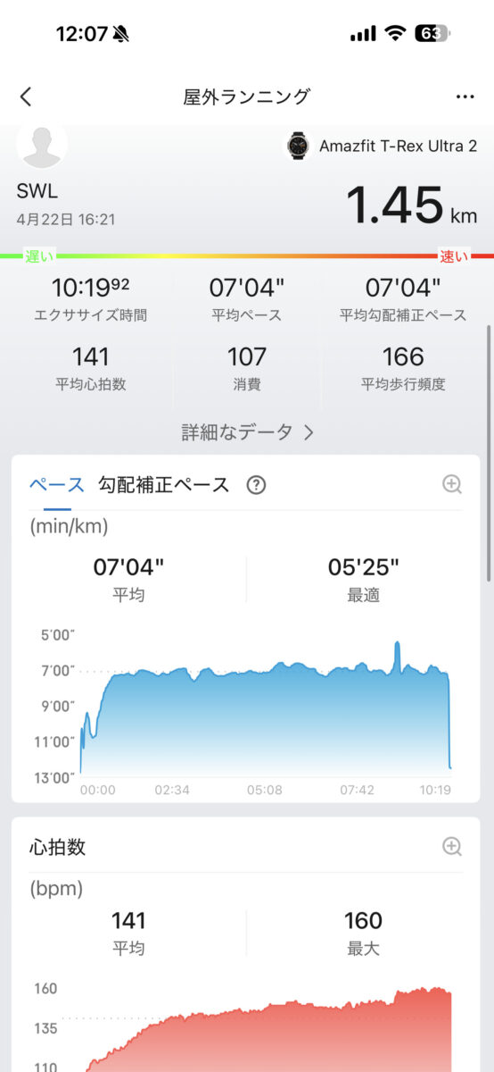 道の勾配を補正した1キロあたりのペースや、心拍数のグラフ、心拍ゾーンごとのグラフ、ランニングパワーや高度、ケーデンス、接地時間など、様々な指標を計測することができます。ランニング1回分の計測データを見るだけでも、運動に非常に強いモデルだということがわかります。