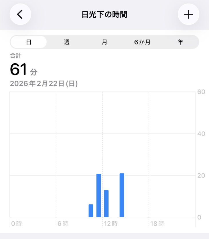 まだ確認したことがない方は、ぜひヘルスケアアプリで過去のデータを振り返ってみてください。思っていたより多く(あるいは少なく)屋外にいた時間が積み上がっているかもしれません。
